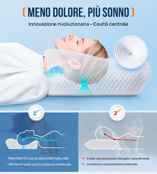 Cuscino rinfrescante ultra lenitivo per il sollievo dal dolore, con supporto cervicale regolabile, design ergonomico in memory foam inodore, ideale per dormire su fianco, schiena e pancia.